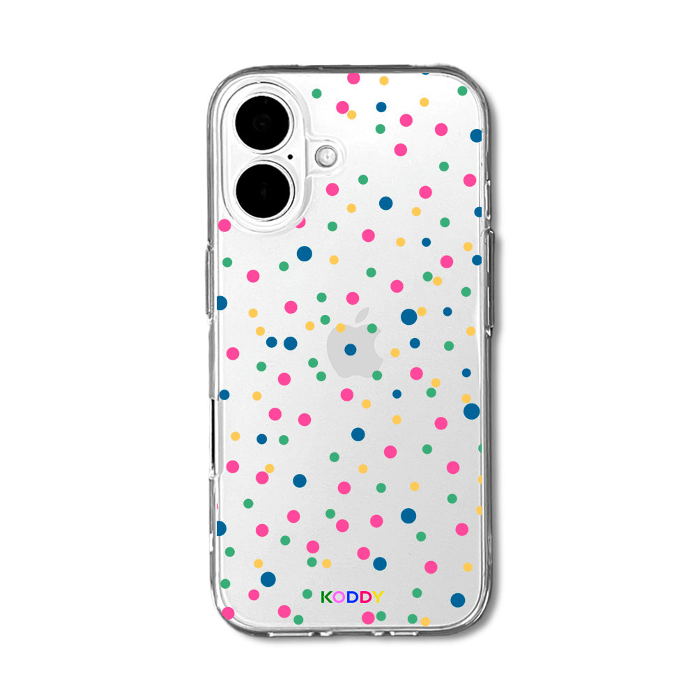Protect your iPhone in style with this colourful polka dot phone case. Made from durable materials, this clear Apple phone case will keep your device safe from scratches, bumps, and drops while adding a fun pop of color to your everyday look.
