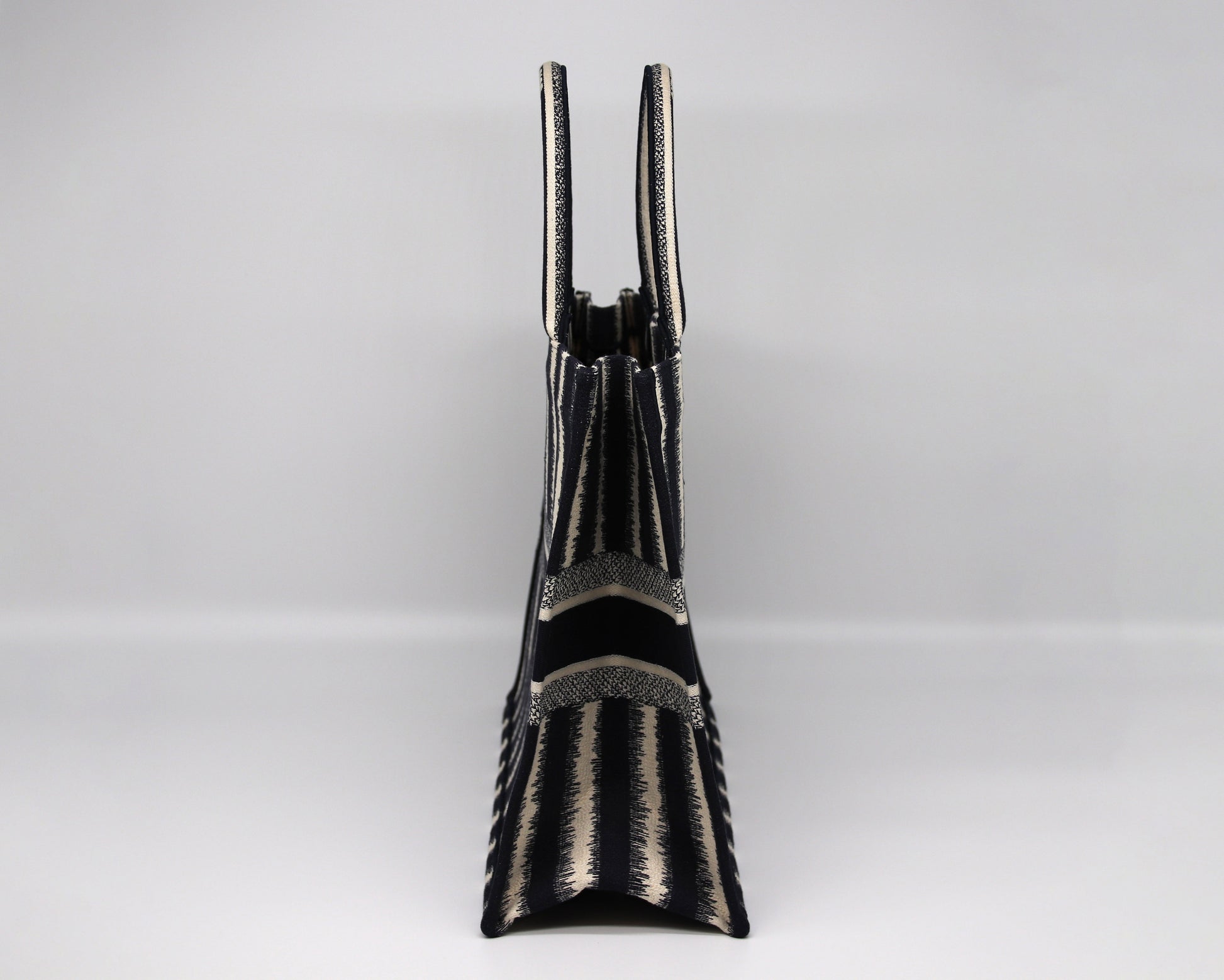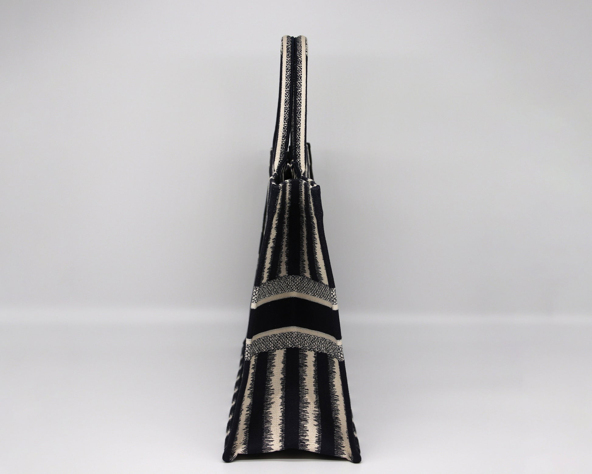 This Dior Book Tote in the large size is a super popular and versatile bag, which can be used every day and is the perfect travel, beach and pool bag for on holiday. Featured in this unique D-Stripes Embroidery for the 2021 Summer collection, it is an absolutely stunning piece.
